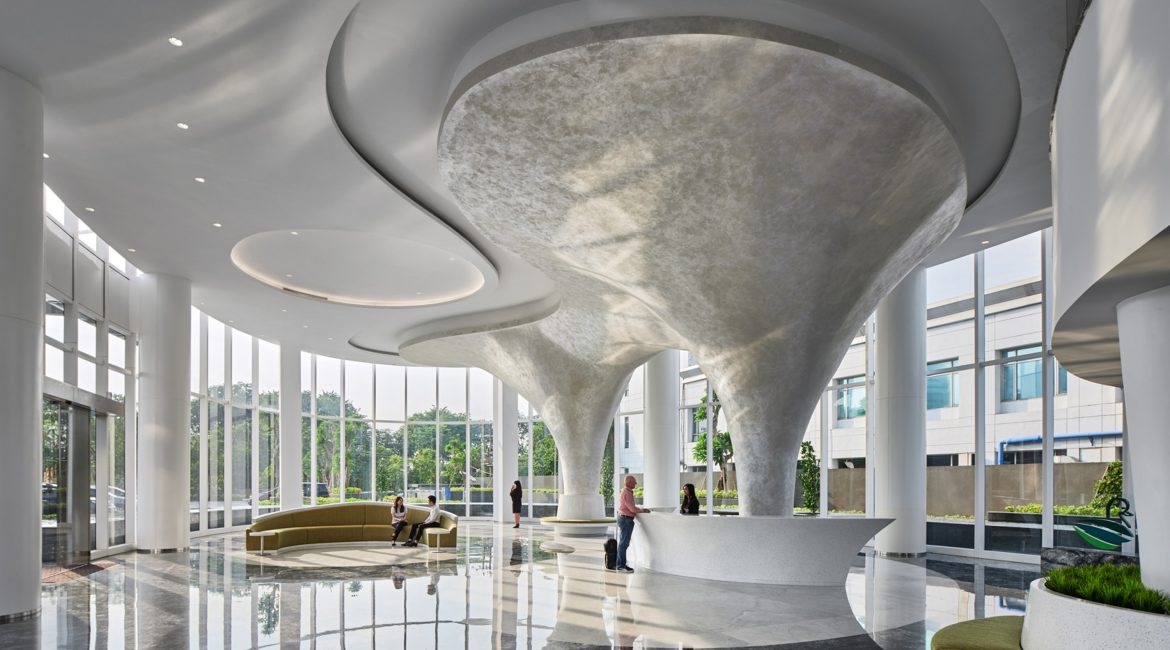 In this project, CDA was endorsed by MMoser Singapore to be their local partner of one iconic building, the new headquarter of Avian paint in Surabaya. A spacious and curvilinear lobby design to carry over the oval and spiral shape of the building into the interior, welcoming anybody with an awe into the space. An internal staircase was added including some voids to connect 7 floors featured with undulating decorative pendant lights. Different color accents for different floors to add dynamics, act as way findings as well as showing colors to the business of Client.