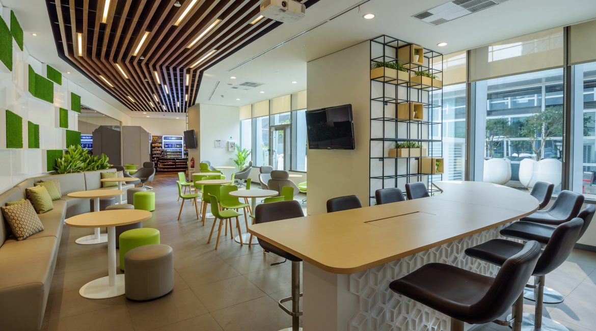 Creating a Corporate Hospitality ambiance for this giant cigarette company with tobacco and gold colors has made the office ambiance luxurious. Fresh lime green as accent in the breakout that leads to an outdoor smoking area has attracts staffs to socialize and work here as well.