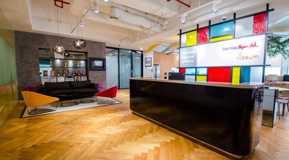 In collaboration with Interics Asia. One of the largest local advertising agency, Dwi Sapta, has joined Dentsu and it has their own local culture they wish to bring into the office. A breakout with warm family lunch happening, warm wooden flooring, and Indonesian arts in the huddle areas. Huddle areas are themed with outdoor setting of river, rice paddy and a fishpond to best jog those creative minds